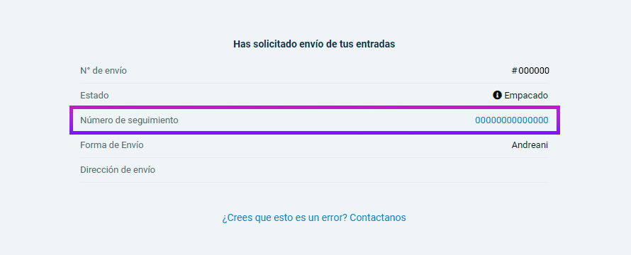 Podrás consultar el estado de tu envío a domicilio en la sección "Mis Entradas" que figura en la esquina superior derecha de la WEB, una vez iniciada la sesión en tu cuenta de Ticketronic.